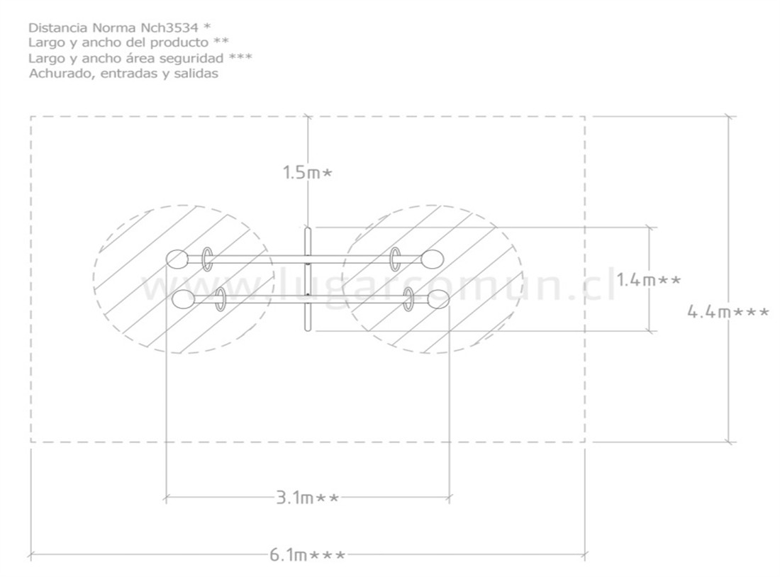 El balancín doble, ideal para niños de 5 a 12 años, permite el uso simultáneo de hasta 4 usuarios, promoviendo la interacción social, la cooperación y el desarrollo de habilidades motoras gruesas, equilibrio y coordinación. Está fabricado con materiales no tóxicos y resistentes de alta calidad, fáciles de mantener y limpiar, y resistentes a la intemperie. Su construcción incluye tubo de 3″x2mm para la base, pletina de acero 50x8mm y 50x5mm para las placas de unión, tubo de 2″x2mm para el brazo, tubo de 1″x2mm para las manillas tope, HDPE de 19mm para el asiento y fierro negro Ø16 para el pasador.