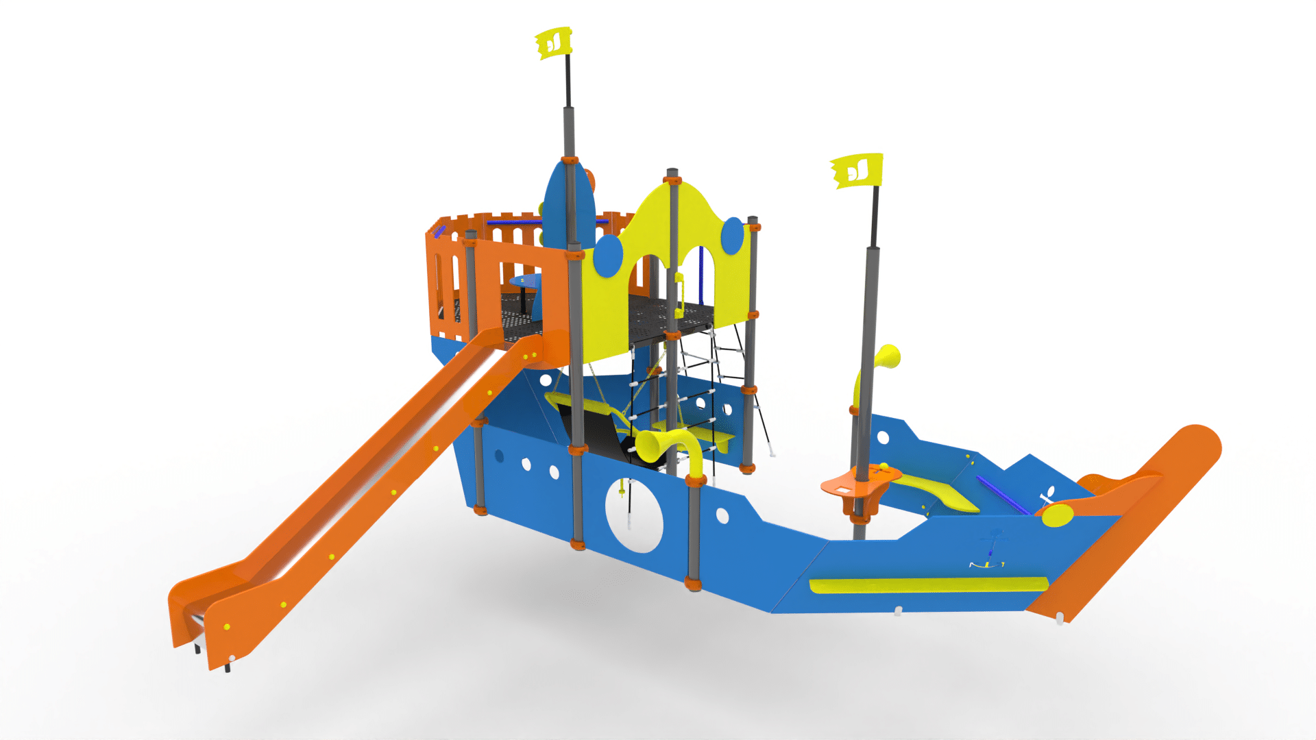 El Barco Pirata de Diseño y Construcción Lugar Común, invita al juego y la imaginación con sus formas redondeadas y colores suaves. Su temática motiva el juego dramático y la representación de roles.êêIncluye múltiples actividades lúdicas, una cabina para balancearse que estimula el equilibrio y el espacio tras la quilla con bancos para socializar. El acceso mediante red o escalera accesible permite la inclusión de usuarios con distintas capacidades.êêSu diseño abierto favorece la participación, mientras que los elementos sensoriales impulsan habilidades comunicativas. El tobogán, además de entretener, estimula el equilibrio y brinda una experiencia emocionante.