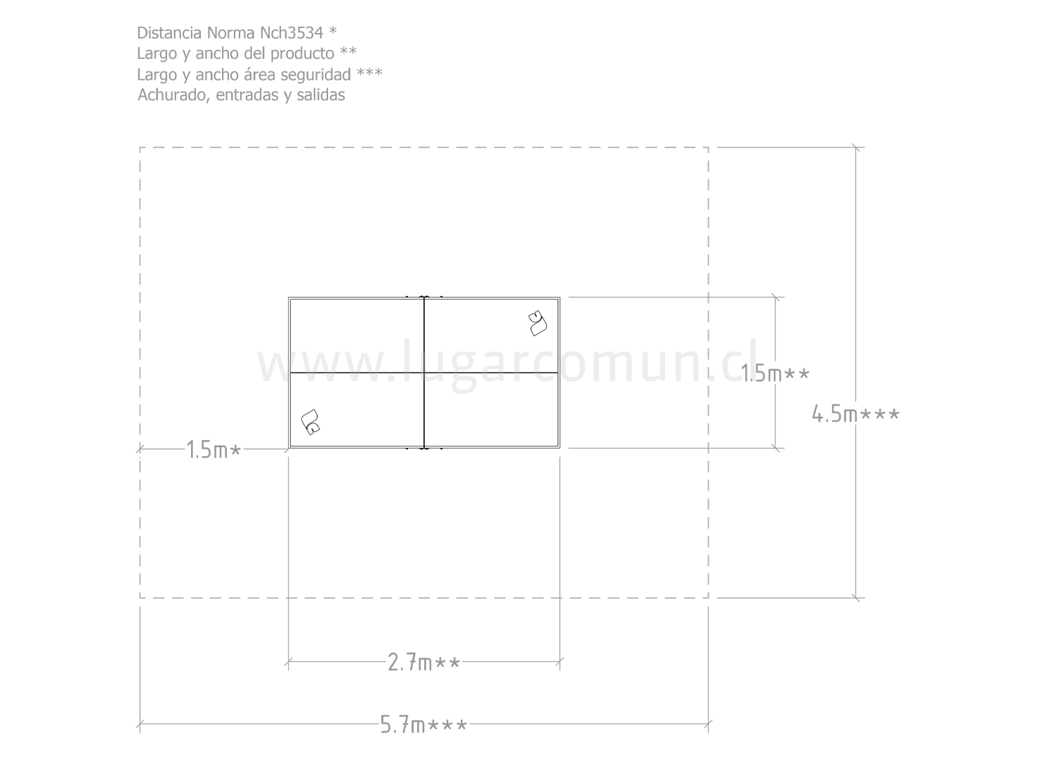 Mesa de pingpong antivandálica de uso público, para recreación al aire libre. De medidas oficiales para deporte estándar y paralímpico, su diseño cumple con todos los estándares de competición. Tiene capacidad para dos usuarios, recomendada para todas las edades, además su diseño inclusivo considera accesibilidad universal. Sus ventajas constructivas incluyen una superficie de HPL de 15 mm, una malla de acero, una estructura de acero galvanizada en caliente, resistente a las inclemencias del tiempo como la humedad o la corrosión y terminación de pintura electroestática poliéster exterior sin plomo y con protección UV. De medidas oficiales: altura de mesa 0,76, altura general (considerando malla) 0,92m, ancho 1,53 m y largo de 2,74 m.