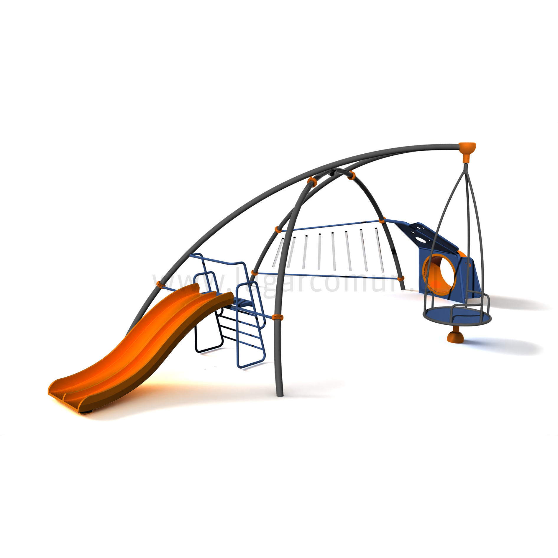 Sistema modular con circuito de actividades de juego conectadas, diseñado para 25 usuarios de 5 a 12 años. Este sistema se adapta a distintos entornos y paisajes gracias a su característica modular. Incluye actividades de juego individuales y colectivas que fomentan las habilidades sociales.êêEl diseño incorpora accesibilidad universal, con elementos de juego inclusivos y actividades a nivel de suelo. Los paneles macizos están fabricados en HDPE de 19 mm de espesor, con protección UV y superficie texturizada, garantizando durabilidad y seguridad en el uso.êêSus ventajas constructivas incluyen una estructura en cañería ISO galvanizada y un acabado con pintura electrostática, asegurando resistencia y larga vida útil.