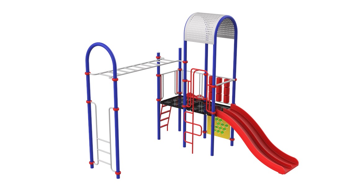 Sistema modular que contiene un circuito de actividades de juego. Las actividades de juego son individuales y colectivas, fomentando el encuentro intergeneracional y las habilidades sociales. Puede adaptarse a distintos entornos y paisajes por su característica modular. Para 20 usuarios de 5 a 12 años. Compuesto por dos torres centrales adyacentes con actividades para trepar, manipular, deslizar y caminar. Sus ventajas constructivas incluyen una estructura de acero galvanizada en caliente resistente a las inclemencias del tiempo, como la humedad o la corrosión, terminación de pintura electroestática poliéster exterior sin plomo y con protección UV, sujeciones de aluminio fundido y elementos de plástico rotomoldeado.