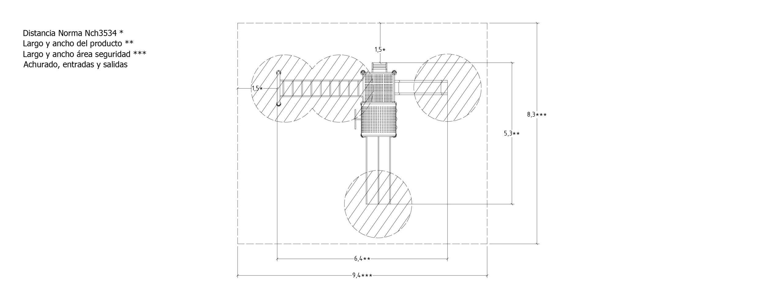 Sistema modular que contiene un circuito de actividades de juego. Las actividades de juego son individuales y colectivas, fomentando el encuentro intergeneracional y las habilidades sociales. Puede adaptarse a distintos entornos y paisajes por su característica modular. Para 20 usuarios de 5 a 12 años. Compuesto por dos torres centrales adyacentes con actividades para trepar, manipular, deslizar y caminar. Sus ventajas constructivas incluyen una estructura de acero galvanizada en caliente resistente a las inclemencias del tiempo, como la humedad o la corrosión, terminación de pintura electroestática poliéster exterior sin plomo y con protección UV, sujeciones de aluminio fundido y elementos de plástico rotomoldeado.